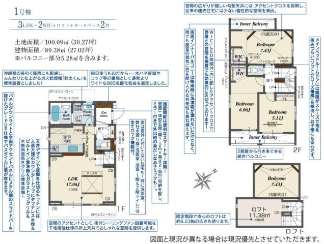 | 建物面積/坪数 | 89.38㎡ / 27.03坪 | 土地面積/坪数 | 100.09㎡ / 30.27坪 |