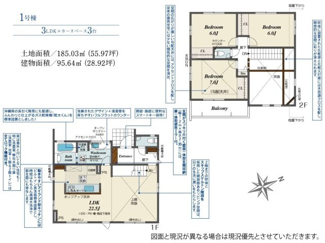 | 建物面積/坪数 | 95.64㎡ / 28.93坪 | 土地面積/坪数 | 185.03㎡ / 55.97坪 |