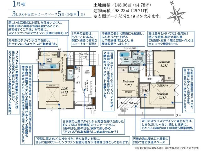 | 建物面積/坪数 | 98.23㎡ / 29.71坪 | 土地面積/坪数 | 148.06㎡ / 44.78坪 |