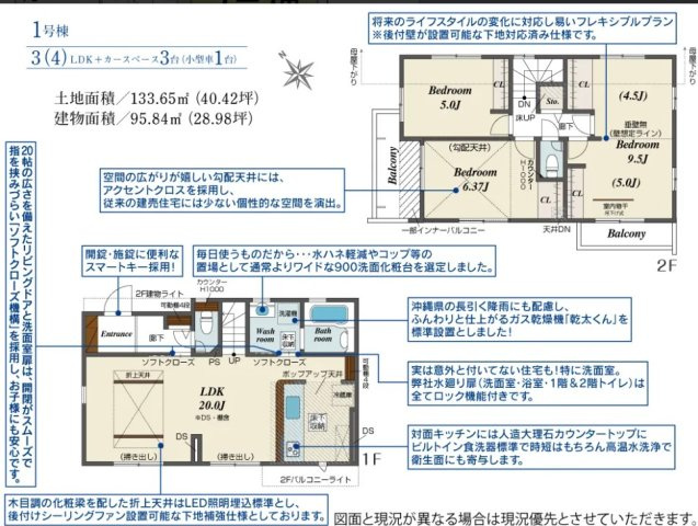 | 建物面積/坪数 | 95.84㎡ / 28.99坪 | 土地面積/坪数 | 133.65㎡ / 40.42坪 |